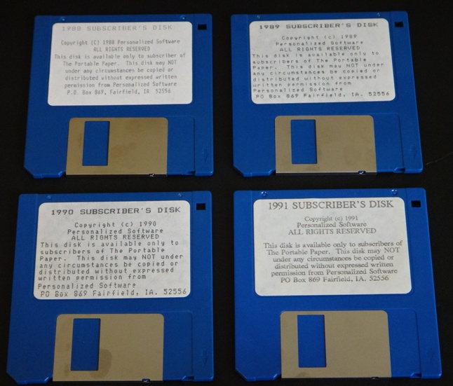 Each year, The Portable Paper publication issued a subscriber's disc to its readers. The disc was issued between 1988 and 1991. It contained programs for use with the Portable and Portable Plus (and later for the Vectra Portable CS and LS/12 computers).